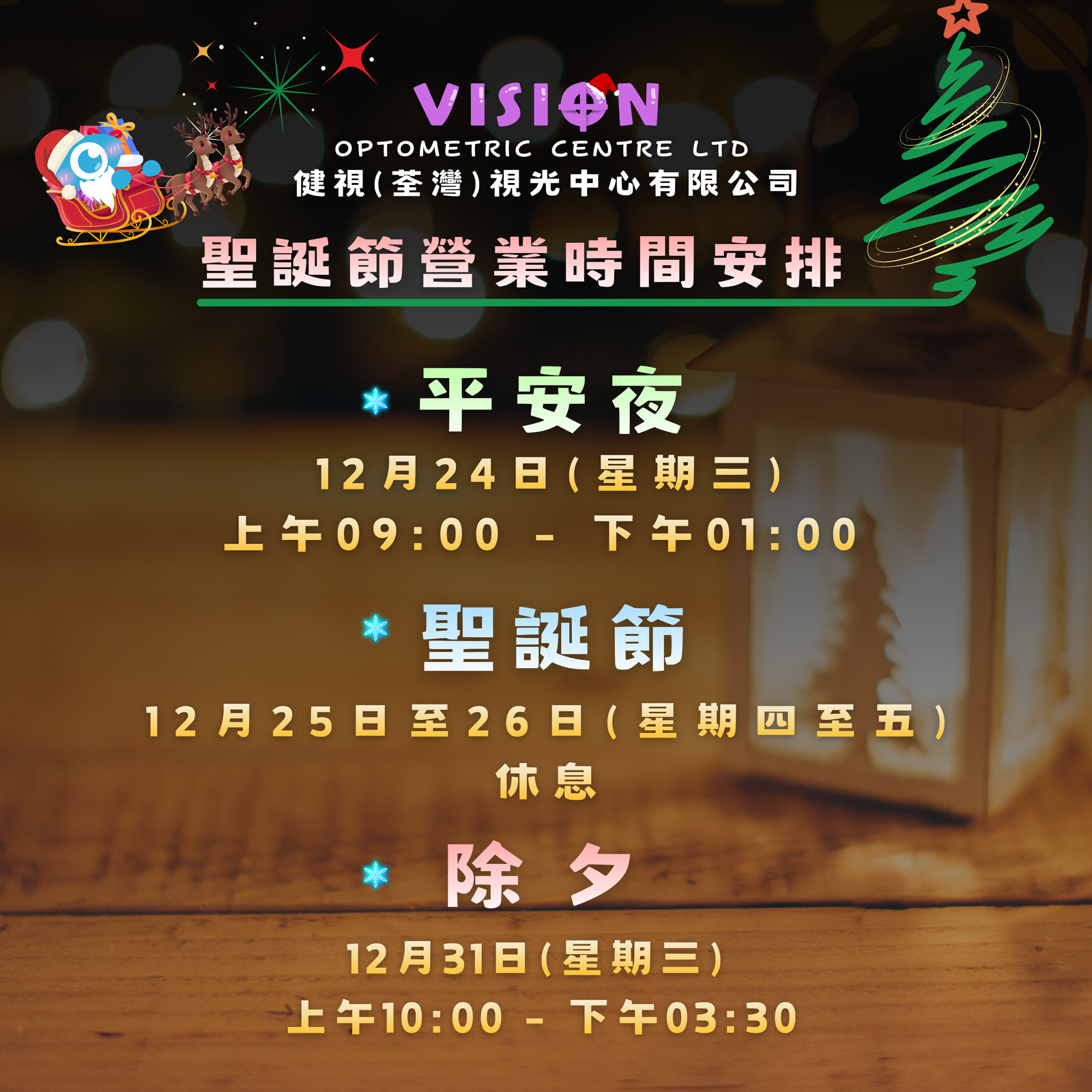 因應節日安排,健視(荃灣)視光中心營業時間會有少少調整,