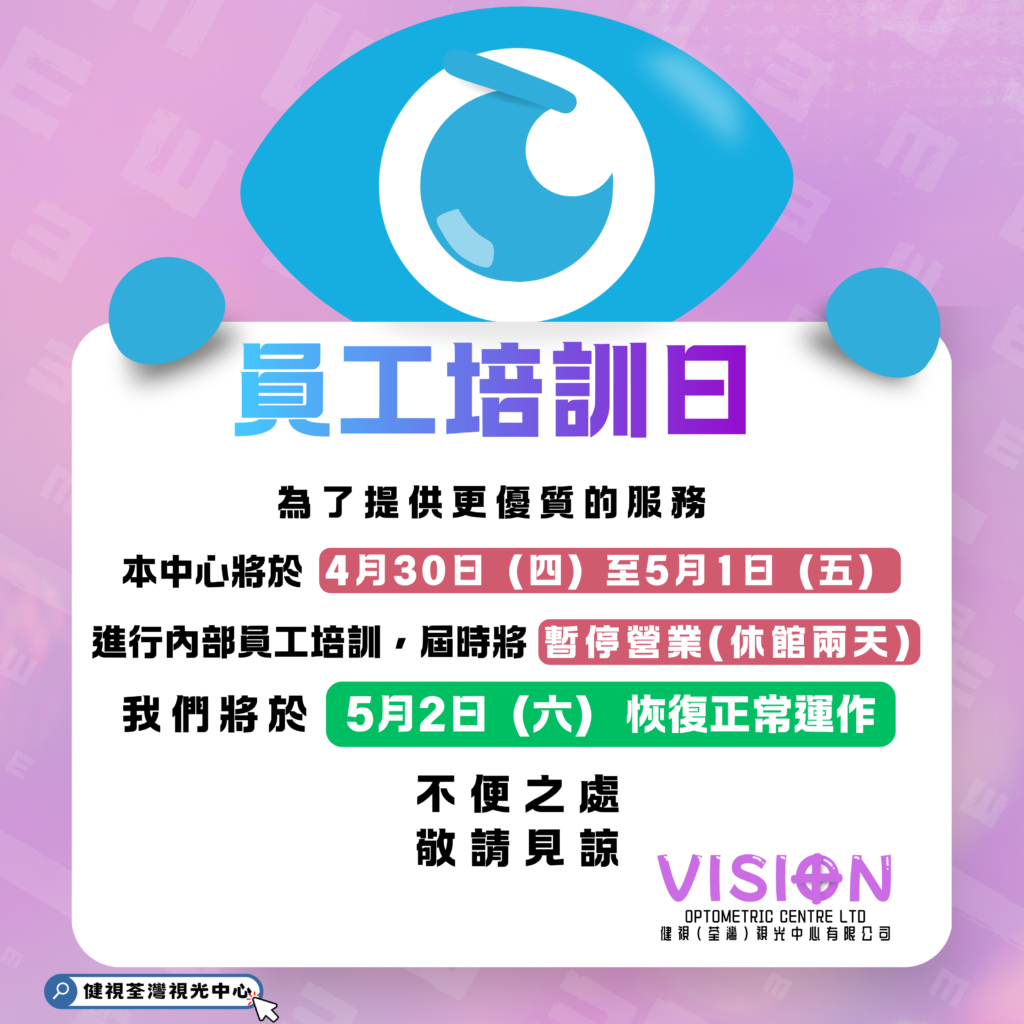 Home / 【公司資訊】 / 【公司資訊】 📣公告:年度內部培訓休館通知分享連結⚠️【 公告:年度內部培訓休館通知 】⚠️為了繼續讓團隊同步最新技術及服務,本中心將進行為期兩天的內部培訓:⛔️暫停營業時間: 4月30日(四)- 5月1日(五)✅恢復正常營運: 5月2日(六)早上9時 – 下午6時不便之處,敬請見諒